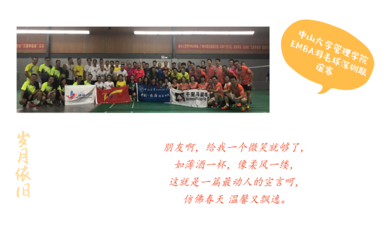 比賽中發(fā)揚(yáng)了“友誼第一、比賽第二”的體育精神,各位參賽校友走出校門,在社會上摸爬滾打,至今已有十幾載,歲月在各自的臉龐心間也已印刻出了不同的滄桑質(zhì)感,但只要走上賽場,沉睡于靈魂中的熱血激情就被喚醒,臉上輕松的笑容、場上矯健的身姿,像極了十幾年前穿著校服的一張張青澀、純真的少年,尤其是中山大學(xué)管理學(xué)院EMBA黃埔32期動動隊(duì),一個班組成了一支實(shí)力不凡的10人隊(duì)伍,在比賽過程中團(tuán)結(jié)合作、默契配合,是“奮斗、愛、分享”精神最生動的詮釋和體現(xiàn)。曾經(jīng)校友相聚于球場,便將半世滄桑拋腦后,一朝何妨作水仙。